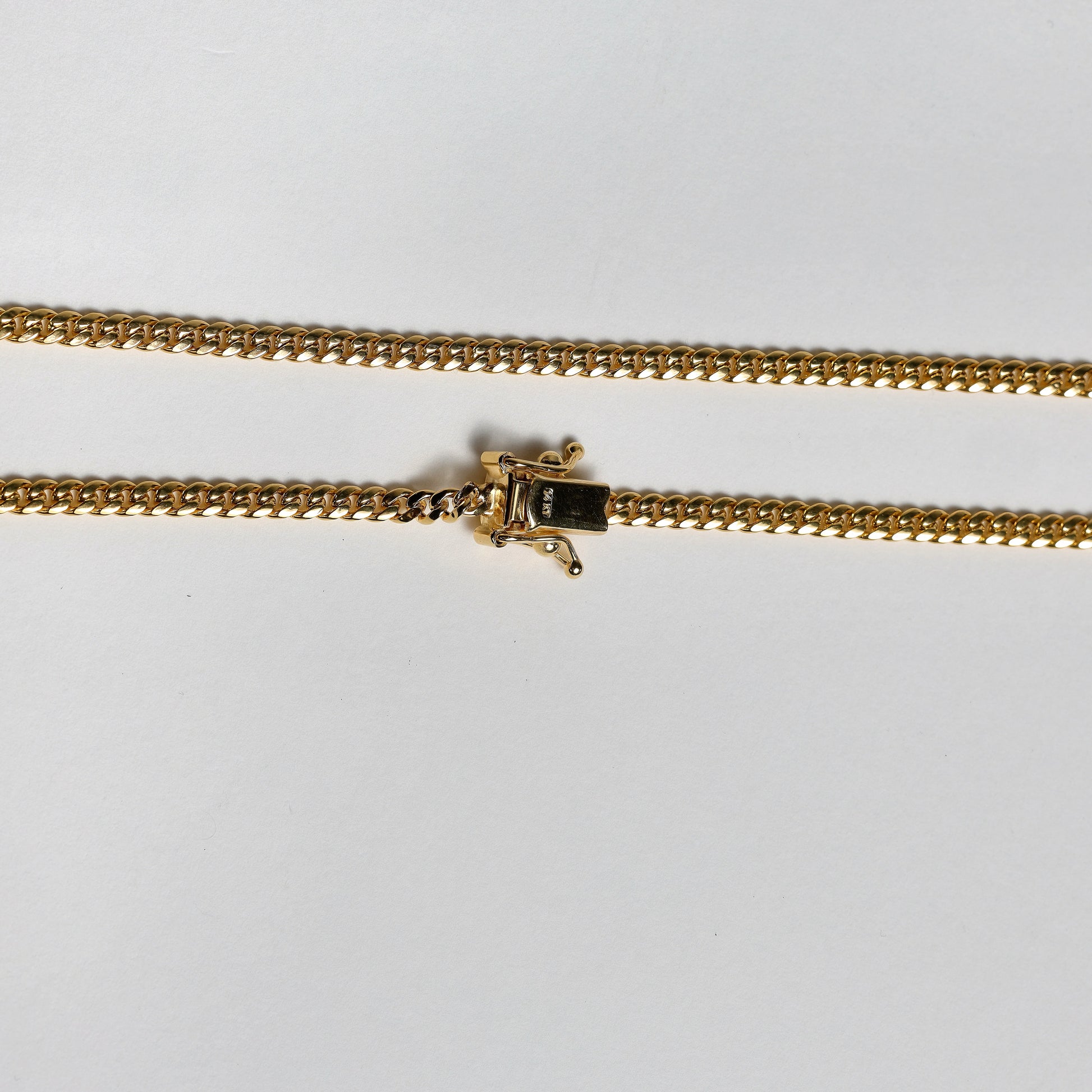 Crafted for those who appreciate timeless elegance and lightweight luxury, this 14K hollow gold Cuban link chain is a sleek statement of refined taste. Measuring 22 inches in length, it offers a bold yet comfortable wear — perfect for layering or standing strong on its own.