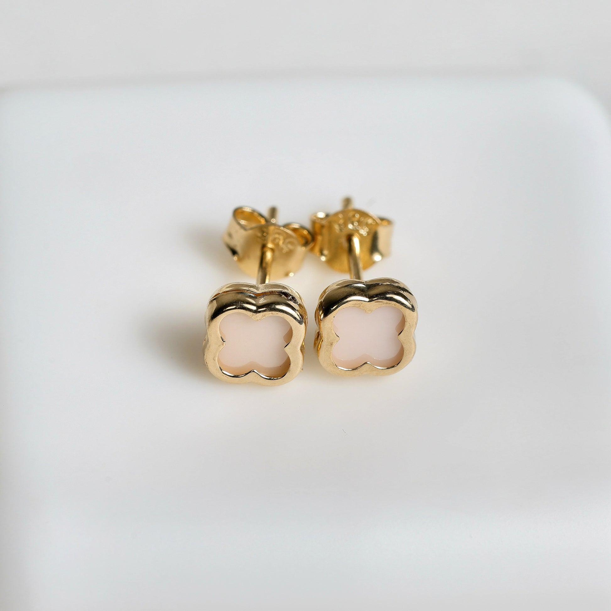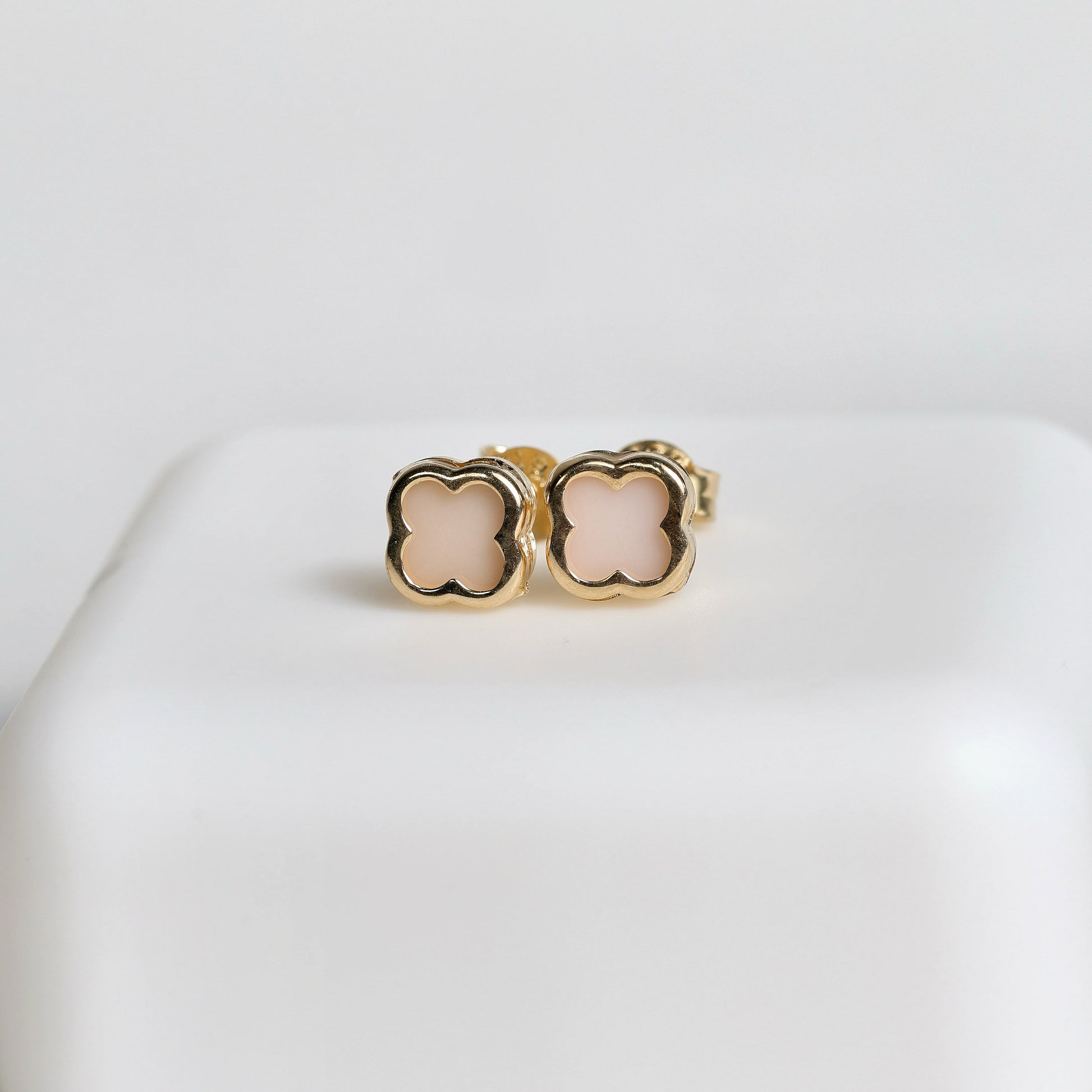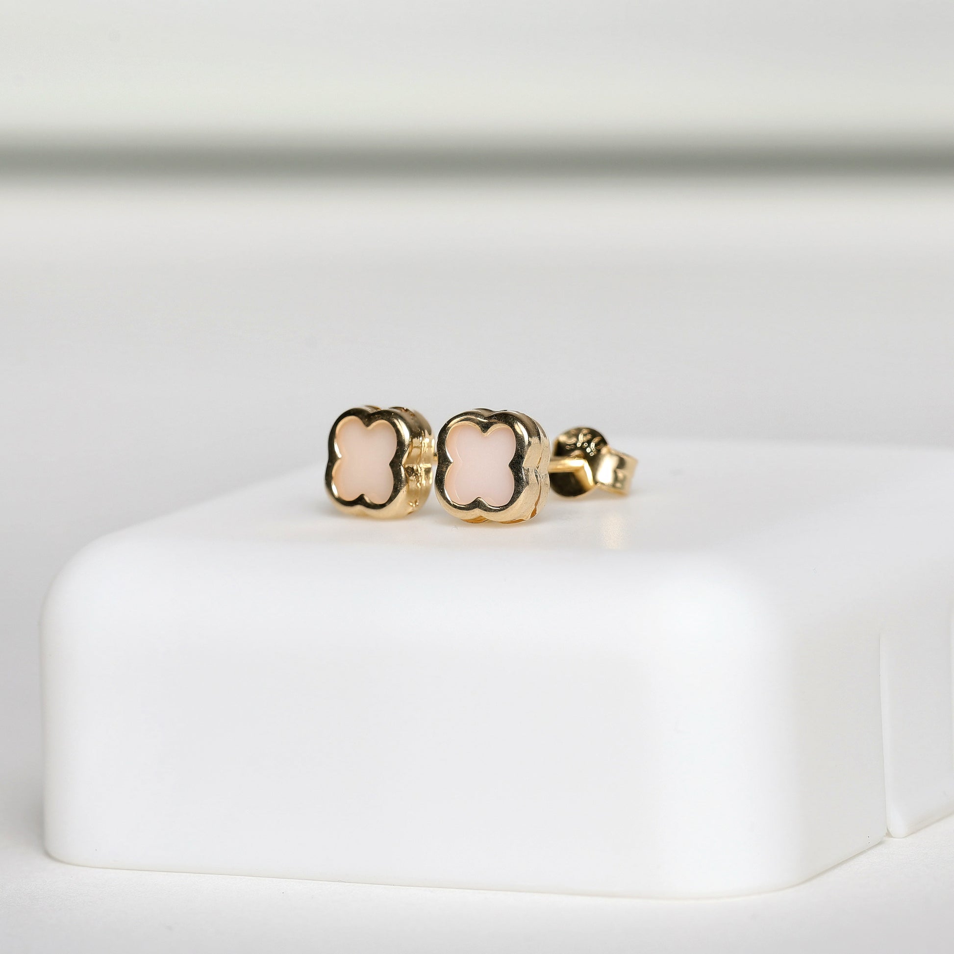 Inspired by the sweetness of early childhood, our Pink Blossom Earrings combine the elegance of 14k gold with a soft pastel pink center. The square floral shape brings a modern and tender charm, perfect for babies or little girls.