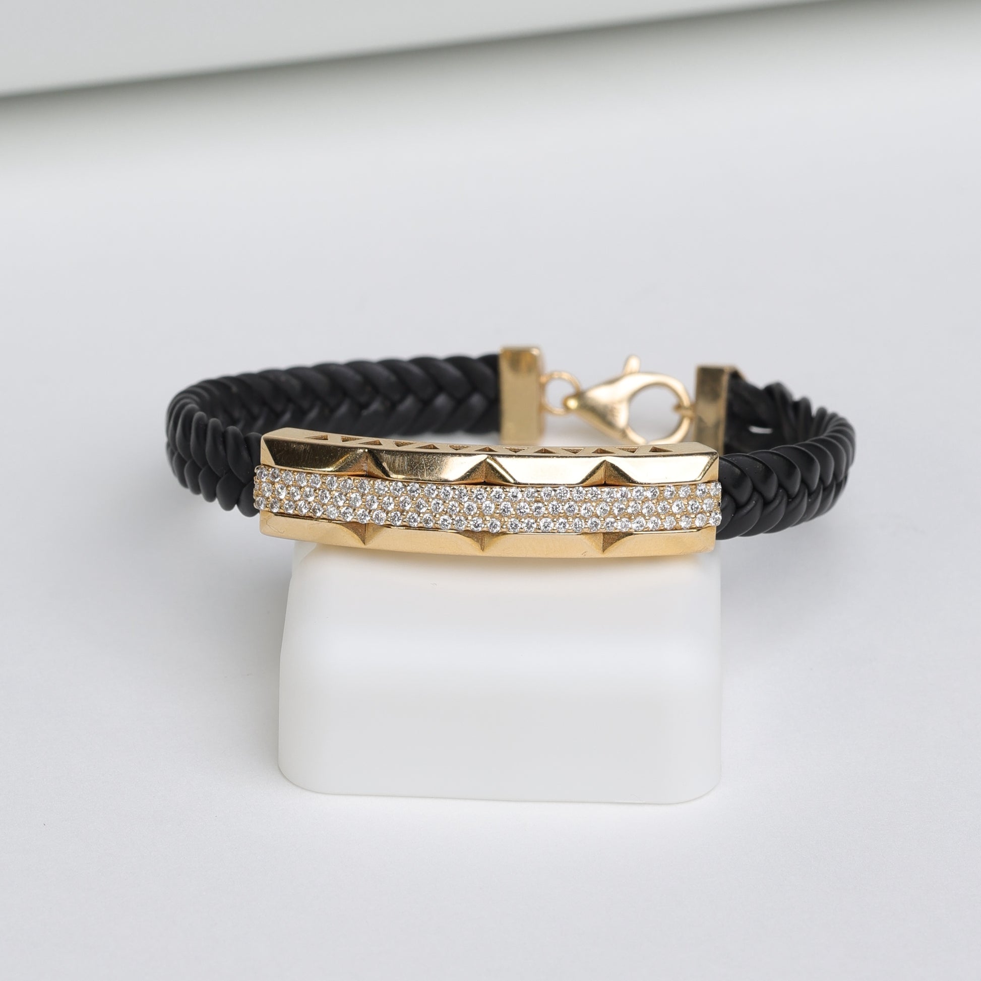 Power meets elegance in our Titan Edge Bracelet, crafted with a bold black braided band and a striking gold center adorned with pavé-set stones and geometric cutouts. The perfect blend of strength and sophistication, this piece is designed for men who command attention and appreciate timeless luxury.